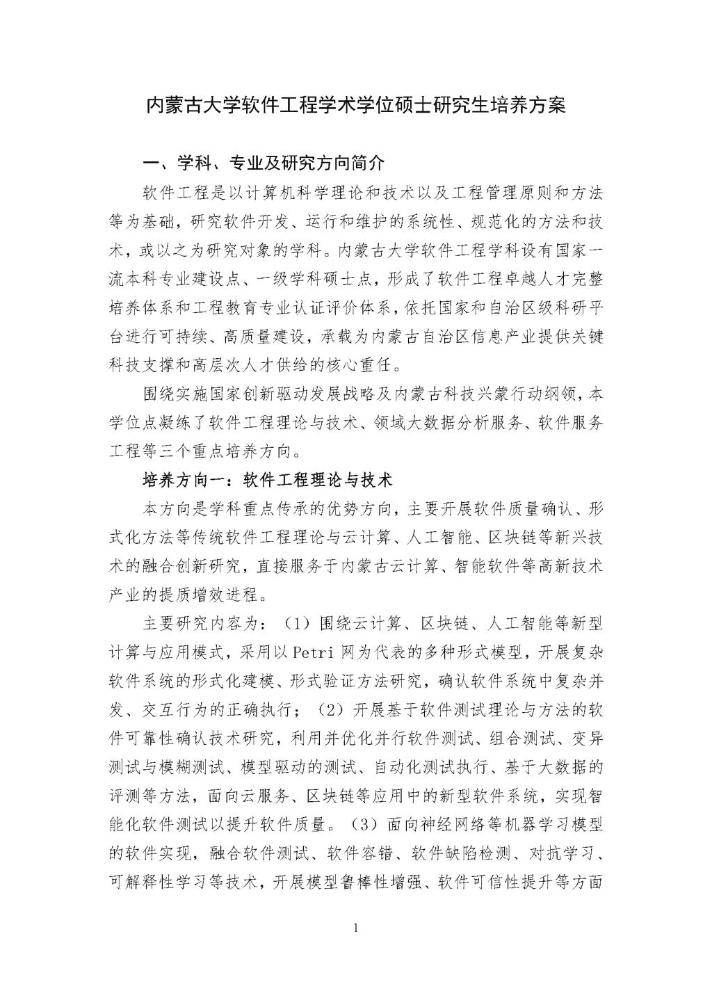 tyc5997太阳集团软件工程学术学位硕士研究生培养方案