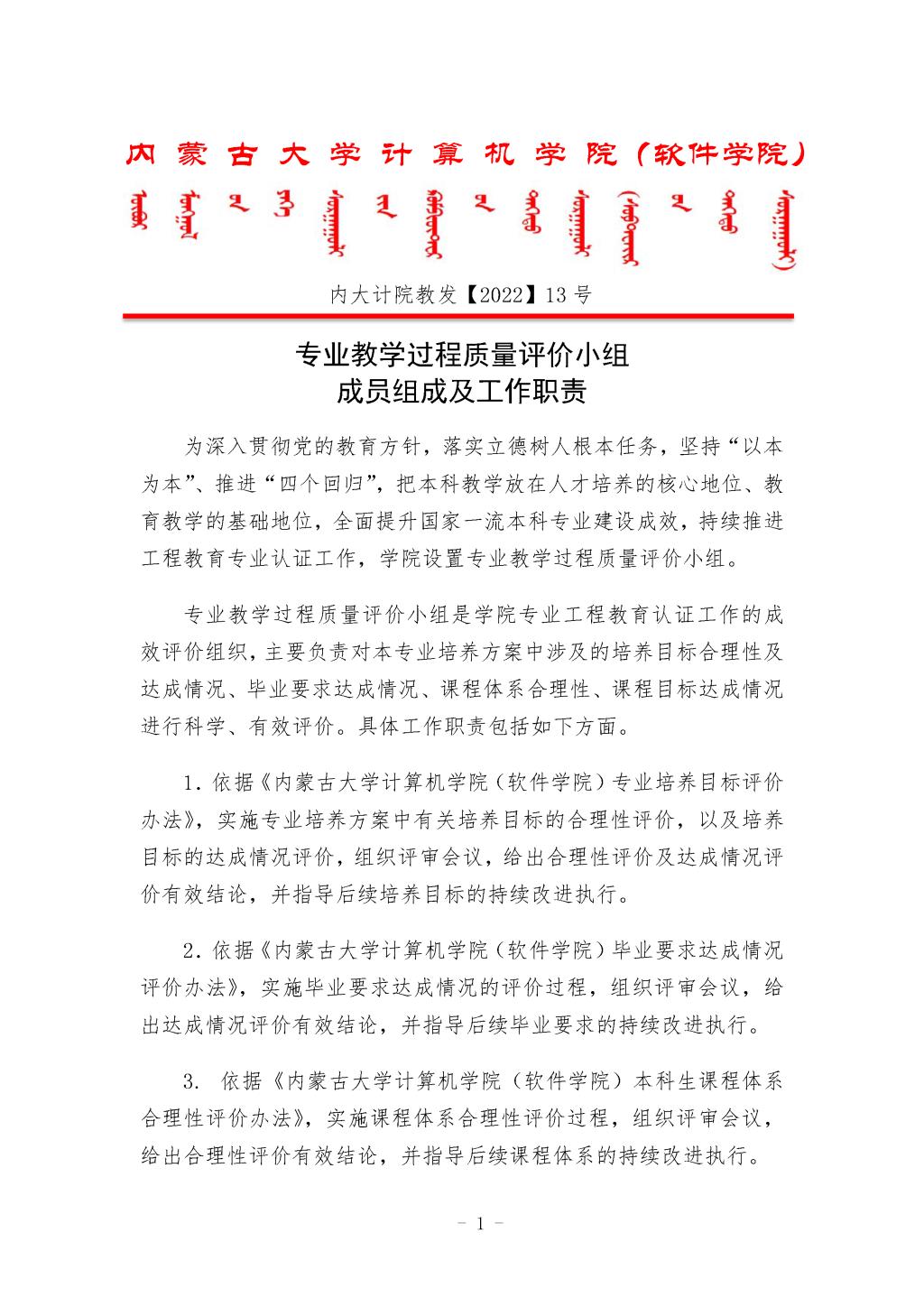 太阳集团tyc5997(软件学院)专业教学过程质量评价小组工作职责