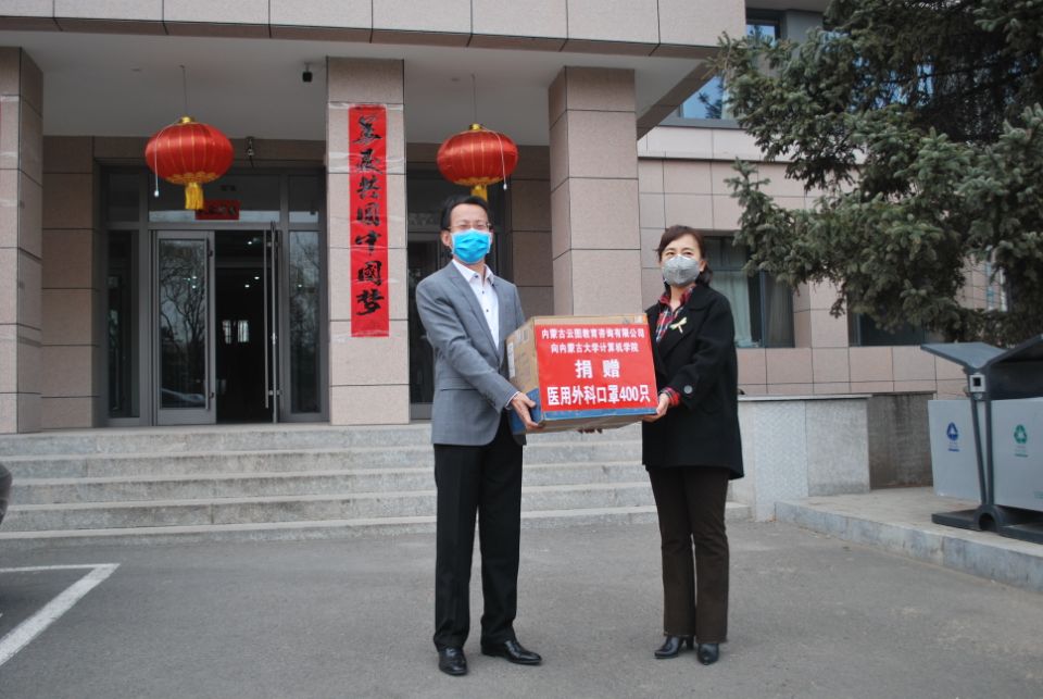 疫情无情人有情,众志成城克时艰,为助力校园疫情防控,2020年3月24日下午,内蒙古云图教育咨询有限公司总经理张兴一行4人,向我院捐赠400枚医用外科口罩。我院院长周建涛、副院长孙涛代表学院接受了本次捐赠。