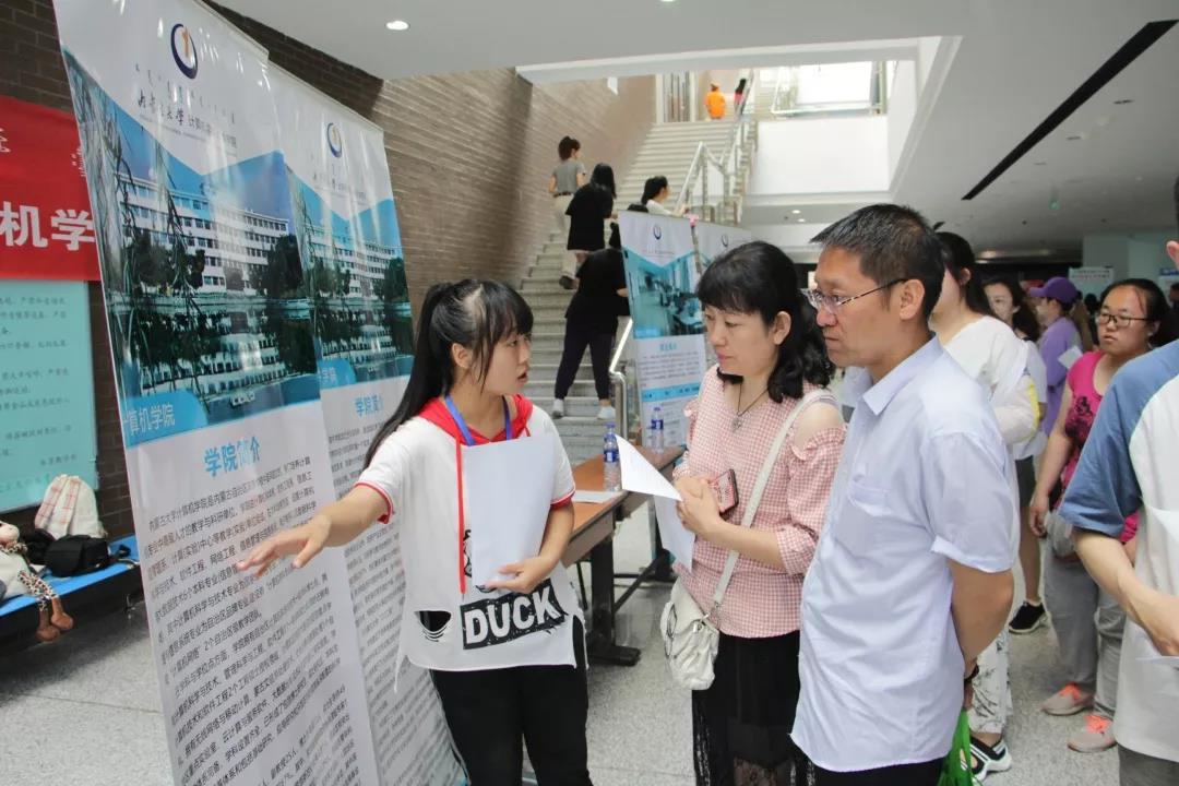 随着科学技术的发展,计算机相关专业已然成为热门专业。活动当天,不少考生和家长们纷纷驻足我院的展区,认真的阅读关于学院、各个专业简介的宣传展架。我院老师从各专业培养方案、学生管理制度、毕业生就业及升研情况等多个方面进行了详细介绍,并结合考生高考成绩、兴趣特长等方面的实际情况给予了考生合理的报考建议。学生会工作人员协助老师们分发了招生简章,并与考生们分享了自身经验。