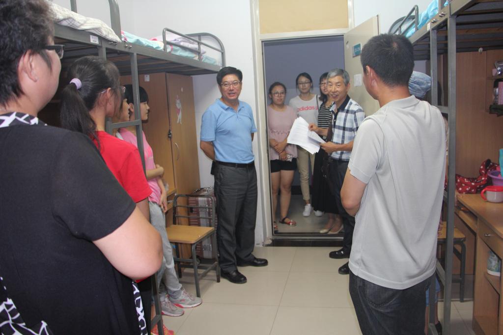 8月16日,学院党总支书记李广武、副院长赵俊峰、教务办主任卢慧、团总支书记兼学工办主任刘雪峰及新生各班班主任一同走访了新生宿舍。老师们与新生及家长面对面热情交谈,详细询问他们对新环境的适应情况,鼓励新生要尽快适应新环境,并且提醒同学们注意人身和财产安全。