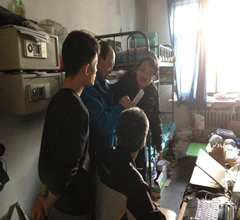 检查组一行人分几天分别对本区及东区的学生宿舍以班级为单位进行了检查,主要查看学生宿舍是否存在大功率用电器(包括电磁炉、电热毯、烧水棒、电水壶等)、酒精炉、管制刀具等危险物品,以及宿舍环境卫生是否干净整洁。此次检查宿舍卫生较以前有了明显改善,并且没有违规电器的发现。在检查过程中,高老师热情地与大四面临毕业的学长们交谈,传授经验并对他们近期的计划提出建议。