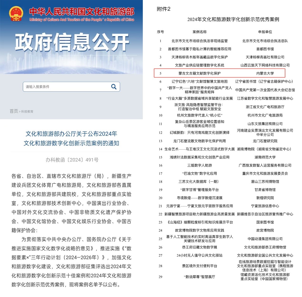 由tyc5997太阳集团牵头申报的“蒙古文古籍文献数字化保护”项目获评2024年文化和旅游数字化创新示范案例。本次评审由中华人民共和国文化和旅游部组织,全国共有29个项目获评优秀案例。本项目旨在贯彻落实习近平总书记在2019年7月16日考察tyc5997太阳集团的重要指示精神:“要加强对蒙古文古籍的搜集、整理、保护,挖掘弘扬蕴含其中的民族团结进步思想内涵,激励各族人民共同团结奋斗、共同繁荣发展。”