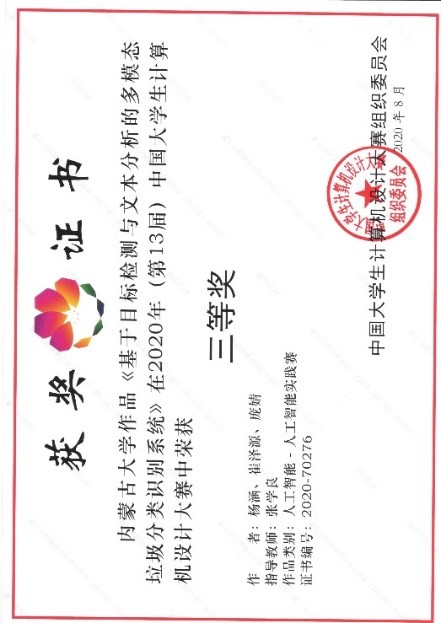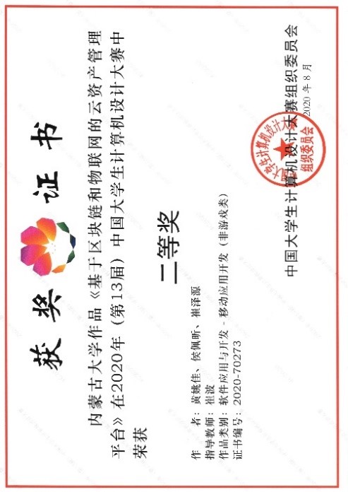 2020年8月27日,2020年(第13届)中国大学生计算机设计大赛落下帷幕,我院派出的三支参赛队全部入围国赛决赛,其中,由崔波任指导教师,黄姚佳、侯佩昕、崔泽源组成的参赛队获得全国二等奖;由崔波任指导教师,刘昱琨、董静钰、洪欣宇组成的参赛队和由张学良任指导教师,杨涵、崔泽源、庞靖组成的参赛队均获得全国三等奖。