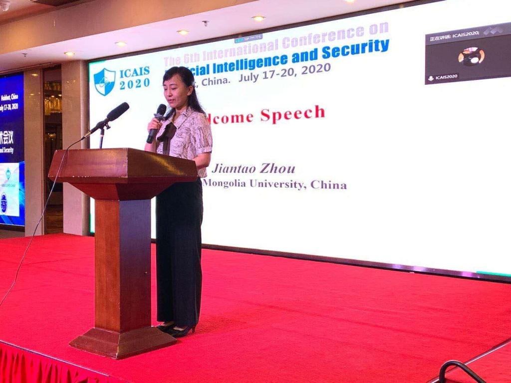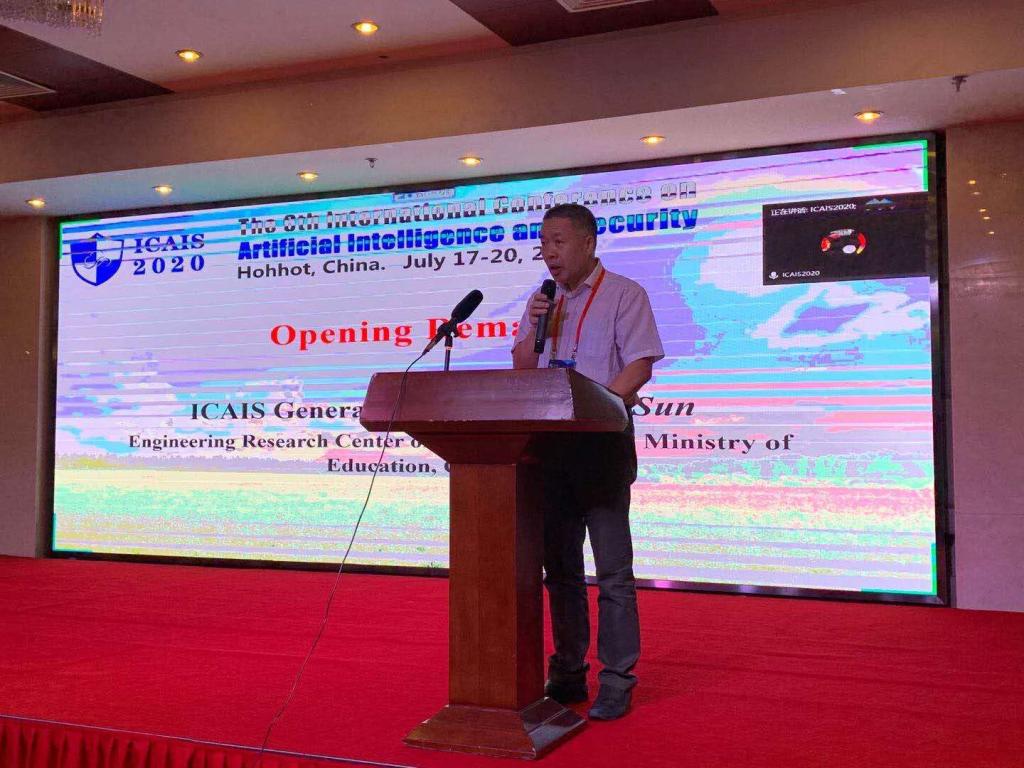 7月17-19日,由南京信息工程大学主办、太阳集团tyc5997、ACM呼和浩特分会承办的“第六届人工智能与安全国际会议”(The sixth International Conference on Artificial Intelligence and Security, 以下简称ICAIS 2020)在呼和浩特春雪四季酒店举行。本次会议邀请了华中科技大学金海教授、中国科学技术大学李向阳教授、清华大学唐杰教授,从区块链、边缘计算和人工智能等几个方向进行现场和线上主旨报告。此外来自全国各地四十多位学者以及线上国际学术同行一起就大数据、人工智能、物联网、网络安全、新媒体、量子计算、信息隐藏与隐私保护等七大领域展开探讨。