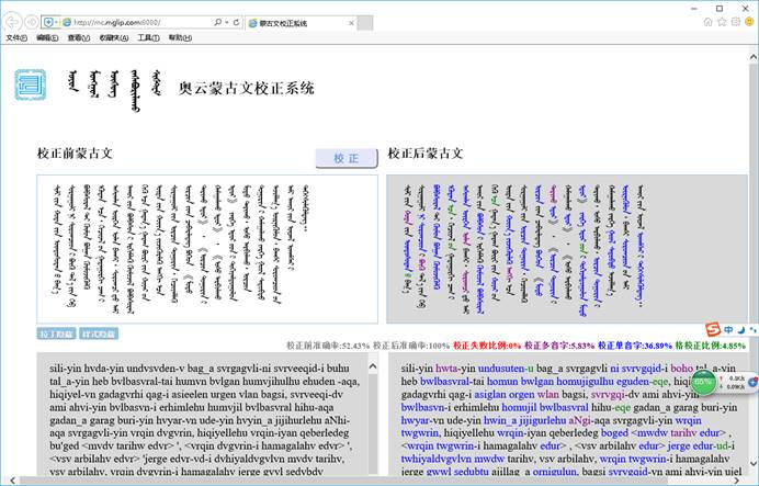 近日,太阳集团tyc5997蒙古文信息处理技术实验室的飞龙副教授带领实验室的路敏(博士生,导师为高光来教授)和王勇和(硕士生,导师为高光来教授)等学生研发了一款高效的蒙古文自动校正系统,该系统可以校正蒙古文的形同内码错误、多音字使用错误和格后缀使用错误等问题,并且对外形错误的错别字进行标记和提示等功能。该系统的校正准确率达到了97%以上,可以满足应用要求。该系统的诞生可以有效地解决目前使用蒙古文国家标准编码当中存在的大量形同内码错误、后缀使用错误等问题,对进一步规范和正确使用蒙古文国家标准编码具有重要的意义。