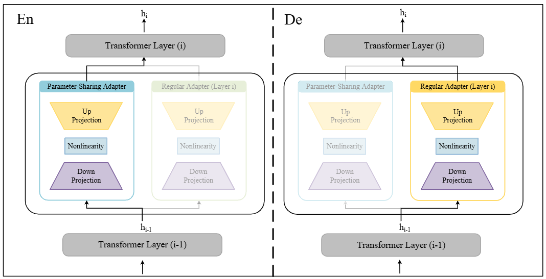 摘要:基于适配器的多语言神经机器翻译(MNMT)通过减轻高资源和低资源语言对之间的数据不平衡并降低训练成本,已成为低资源语言翻译的重要方法。然而,现有的基于适配器的方法缺乏跨语言环境的泛化,特别是在资源匮乏的情况下,其可扩展性受到限制。此外,当前的方法通常为每种语言引入独立的适配器模块,导致模型参数随着语言数量的增加而线性增加。为了应对这些挑战,我们提出了一种多语言参数共享适配器方法。此外,我们引入了基于神经架构搜索(NAS)的策略来提高翻译性能。实验结果表明,多语言参数共享适配器在低资源和高资源数据集上都表现出有竞争力的性能。多语言参数共享适配器方法只有400K个可训练参数,比传统适配器方法的参数减少了20倍。