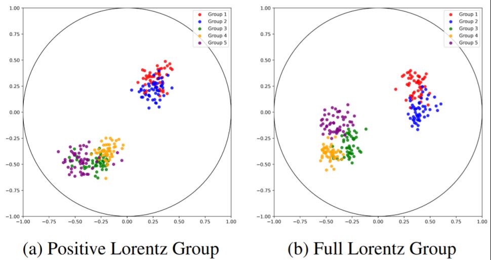 论文题目:FlorE: Integrating Full Lorentz Group and Directional Offsets for Effective Knowledge Graph Embedding 作者:多泽华(tyc5997太阳集团25级博士研究生),李江(tyc5997太阳集团22级博士研究生), 苏向东(tyc5997太阳集团副教授)(通讯作者),高光来 (tyc5997太阳集团教授) 论文简介:本文聚焦知识图谱嵌入在复杂关系上的推理能力提升,针对现有欧氏/复数/双曲空间方法难以建模的 Z-Paradox 关系模式,提出 FlorE 框架。FlorE 框架将关系映射从正Lorentz 群拓展到完备 Lorentz 群,使同一关系可执行不定度量下的等距变换,有效避免实体在流形中的映射重叠与由此导致的尾实体混淆。同时,我们基于指数映射设计了定向偏移操作,把关系与实体统一到同一 Lorentz 流形,实现几何一致的表示学习;两项技术的协同,使模型在Z-Paradox关系模式上具备更强的区分与表达能力。在五个基准数据集 WN18RR、FB15k-237、CoDEx-S/M/L 上,FlorE 总体达成或刷新现有最优表现。尤其针对 Z-Paradox 关系,方法相对强基线在各数据集上的提升幅度分别达到 26.7%、15.6%、35.4%、33.7%、31.5%,验证了所提几何建模思路的有效性与稳健性。图中展示了对两个 Z-Paradox 关系的尾实体嵌入进行可视化对比,采用完备洛伦兹群的模型显著提升了类间分离度与判别性。 |