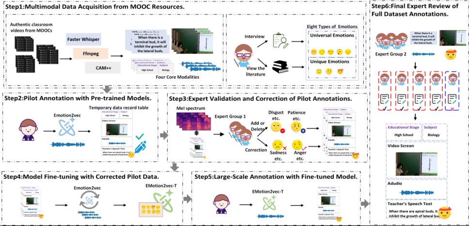 论文题目:Advancing Multimodal Teacher Sentiment Analysis: The Large-Scale T-MED Dataset & The Effective AAM-TSA Model 作者:段智议(tyc5997太阳集团研究员),王祥任(tyc5997太阳集团2024级硕士研究生),袁宏宇(tyc5997太阳集团2025级博士研究生),邢千里(吉林大学副教授) 论文简介:教师的情绪状态在教育场景中至关重要,深刻影响教学效果、学生参与度和学习成绩。然而,由于教师情绪的演绎性,现有研究往往无法准确捕捉教师情绪,忽视了教学信息对情绪表达的关键影响。本研究通过相应地构建数据集和模型来系统地研究教师情绪分析。本研究构建了第一个大规模教师多模态情感分析数据集T-MED。为了确保标记的准确性和效率,本研究采用了人机协作标记流程。T-MED 数据集包含来自 250 个真实教室的 14,938 个教师情感数据实例,涵盖从 K-12 到高等教育的 11 个学科,集成了多模态文本、音频、视频和教学信息。此外,本研究提出了一种新颖的基于非对称注意力的多模态教师情感分析模型AAM-TSA。AAM-TSA引入了非对称注意力机制和分层门控单元,以实现差异化的跨模态特征融合和精确的情感分类。实验结果表明,AAM-TSA 在 T-MED 数据集上的准确性和可解释性方面显著优于现有的最先进方法。 |