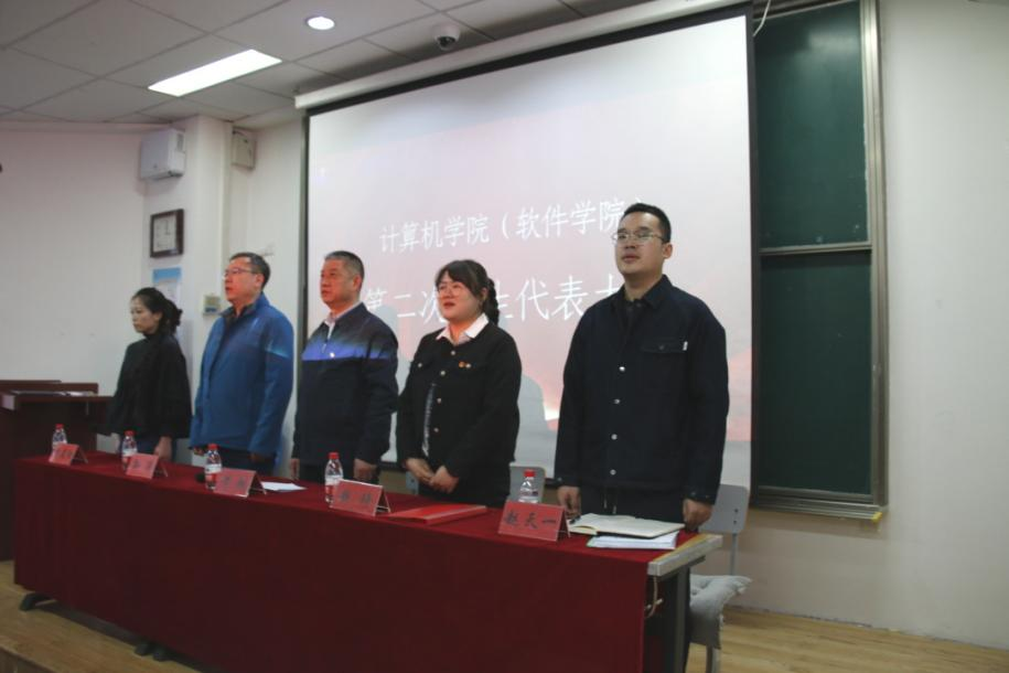 太阳集团tyc5997(软件学院)第二次学生代表大会开幕,全体起立,奏唱国歌。