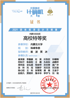 一队、二队和三队分别获得内蒙古自治区“珠峰争鼎”组团队特等奖、二等奖和三等奖。