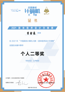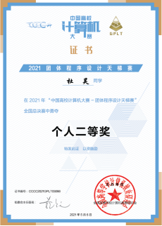 另外,我校在全国个人奖中也取得了突破。李鑫豪、杜昊获得了全国个人二等奖;崔泽源、孔佑东、战鹏祥、王鹏获得全国个人三等奖。