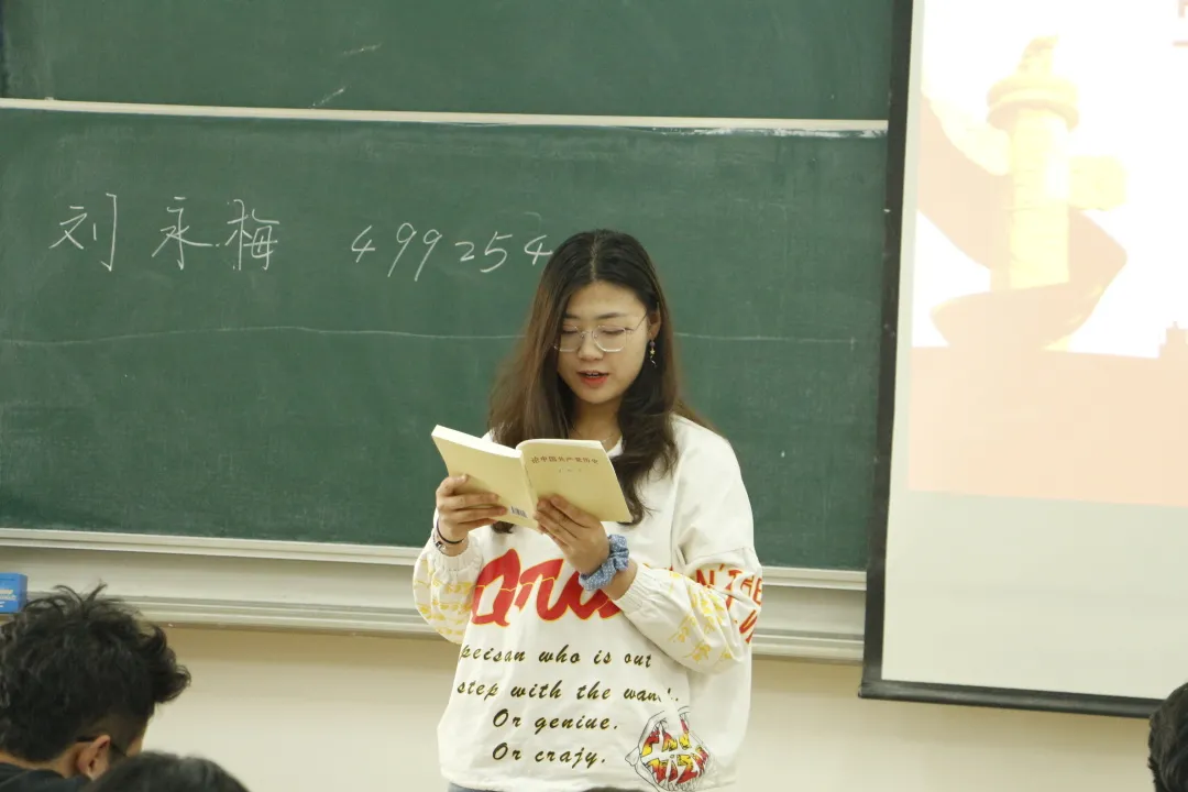 座谈会最后,刘老师激励全班同学要坚定理想信念,树立远大目标,做有理想,有担当,争做民族复兴大业的新时代青年,以优异成绩向党的百年华诞献礼。活动在师生共同朗读《论中国共产党历史》的节选中圆满结束。