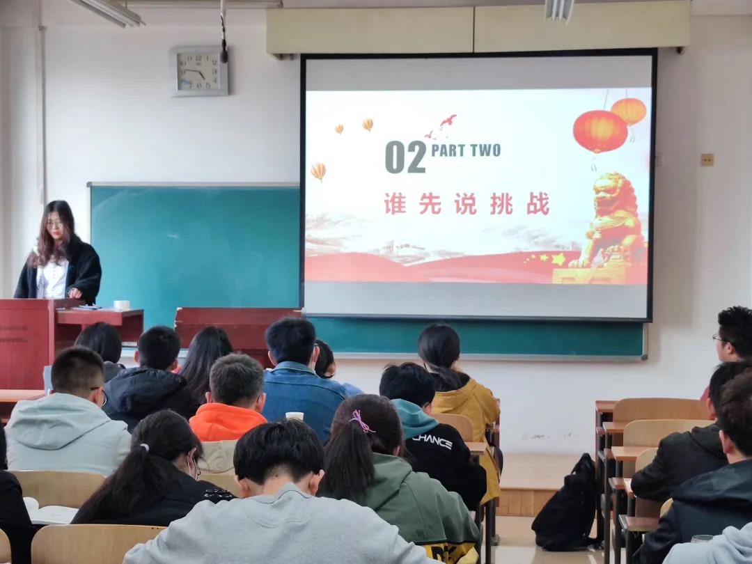 活动以石丽红同学的爱国演讲开始。活动中,信管大数据班同学们进行的小游戏猜字谜更是让气氛快速上升到了高潮,其后阿罗木斯同学进行演讲!最后本次活动团日活动以石丽红同学的总结为结束。
