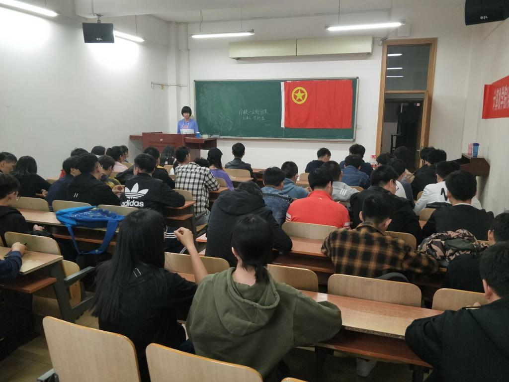 各班团支书按照主题团日活动方案,首先为同学们梳理了建国以来国家的发展成就,一幅幅画面在屏幕上滑过,国家70年来的建设历程变成短短几分钟的缩影展现在了大家面前,时光的厚重感扑面而来。看着祖国在政治、经济、社会、文化等方面的取得的成就,同学们心中的民族自豪感油然而生。接着,团支书与同学们共同学习了党的十九大报告的相关内容,通过学习,同学们进一步明确了我国在未来几十年的发展规划,也使同学们意识到了作为新时代青年大学生、作为国家新一代的建设者和接班人所肩负的责任和使命。