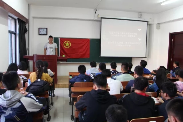 团课上,团支书首先为大家传达了习近平总书记同各界青年代表座谈时的重要讲话内容,并介绍了支部教育实践的具体工作,要求支部全体团员认真学习党的十九大精神,积极参与支部关于“一学一做”的各项专题活动。随后,支部全体团员佩戴团徽,重温宣誓词,并对共青团的发展历程进一步展开了学习讨论。最后,部分支部团员代表积极发言,面向团旗表达了自己的决心与敬意。