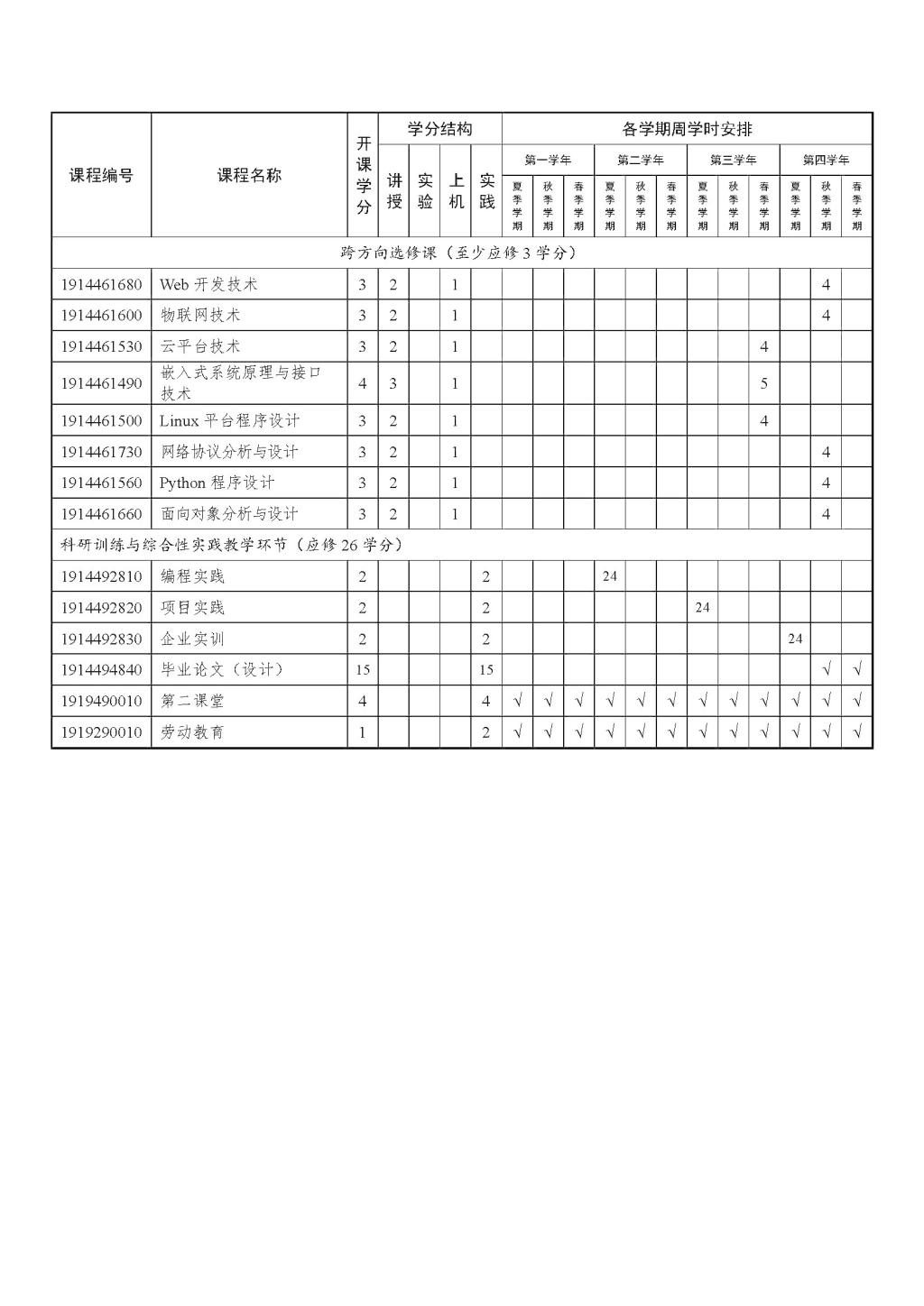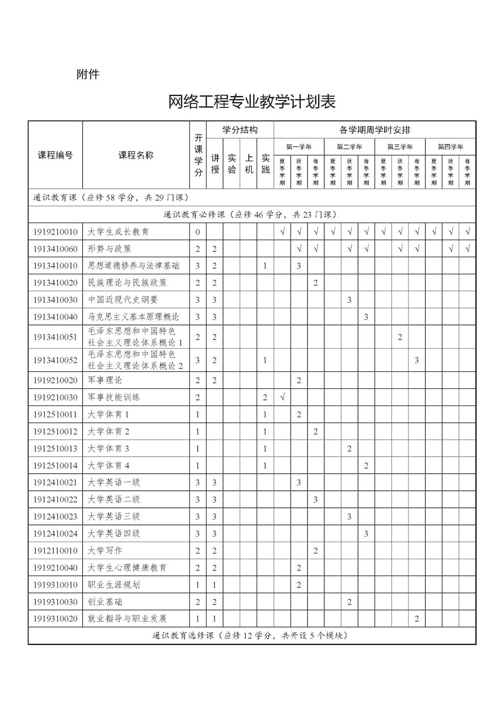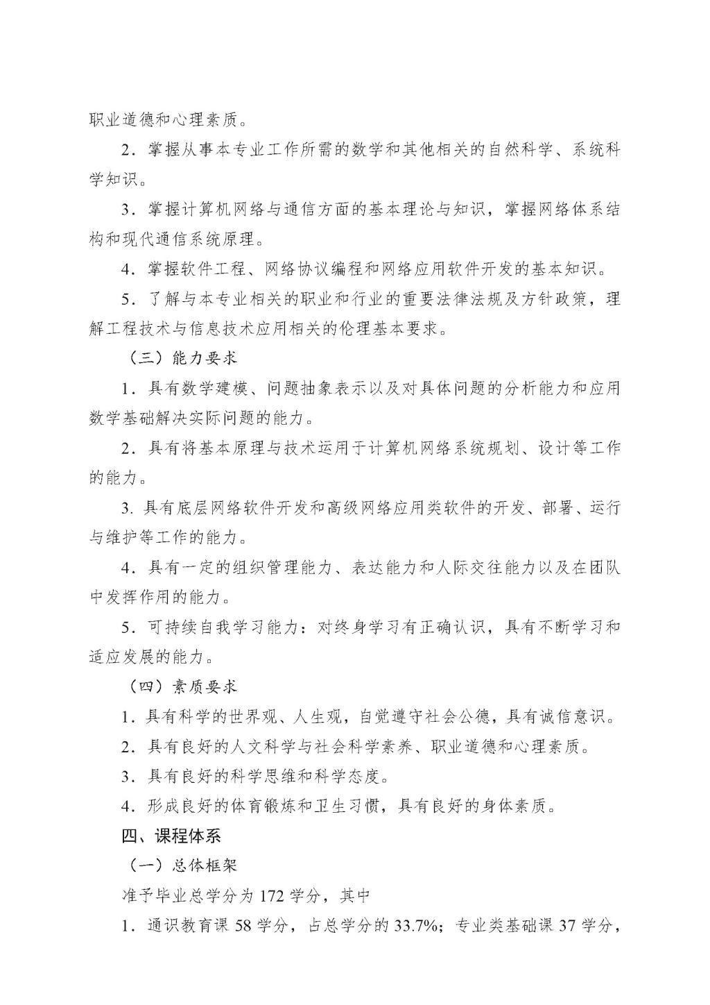 网络工程专业本科培养方案(2019版)