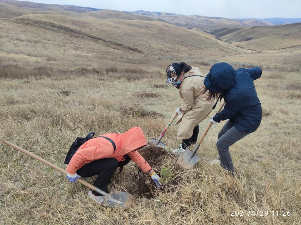 为深化党史学习教育,贯彻落实创新、协调、绿色、开放、共享的新发展理念,2021年4月29日上午,太阳集团tyc5997党委组织学院全体党员教师赴武川县蘑菇窑村开展“绿化青山、守护北疆”义务植树活动。在2个多小时的时间里,30多名党员顶着凌冽的春风、漫天的风沙,在专业绿化人员的指导下,按照先挖树坑、后栽培树苗、再浇水的流程,精心种植下200多棵松树苗。