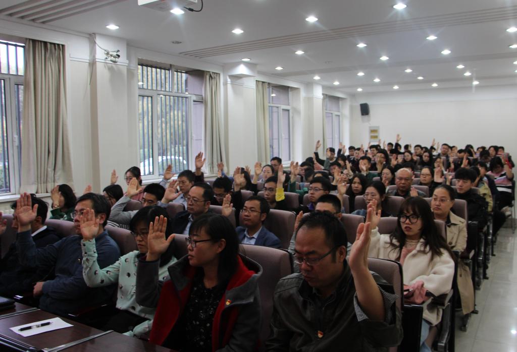 会议由学院党总支副书记、院长周建涛教授主持,党总支书记黄翔代表上届党总支委员会作了工作报告,从党的建设和思想政治工作、人才培养、科学研究、学生创新创业、工会和共青团工作等五个方面全面回顾和总结了过去四年的工作,并从人才培养、师资队伍建设、学生管理服务、科研成果转化、基层党组织建设等5个方面检视了工作中存在的不足,得到了与会党员的充分肯定。