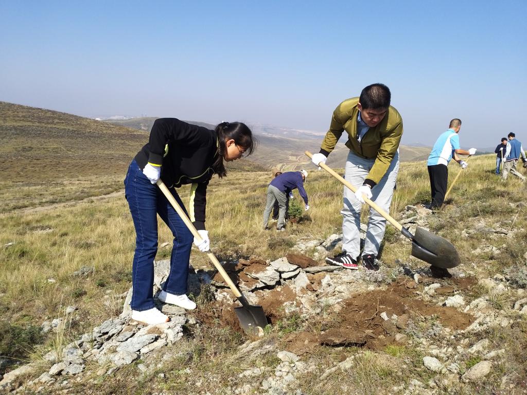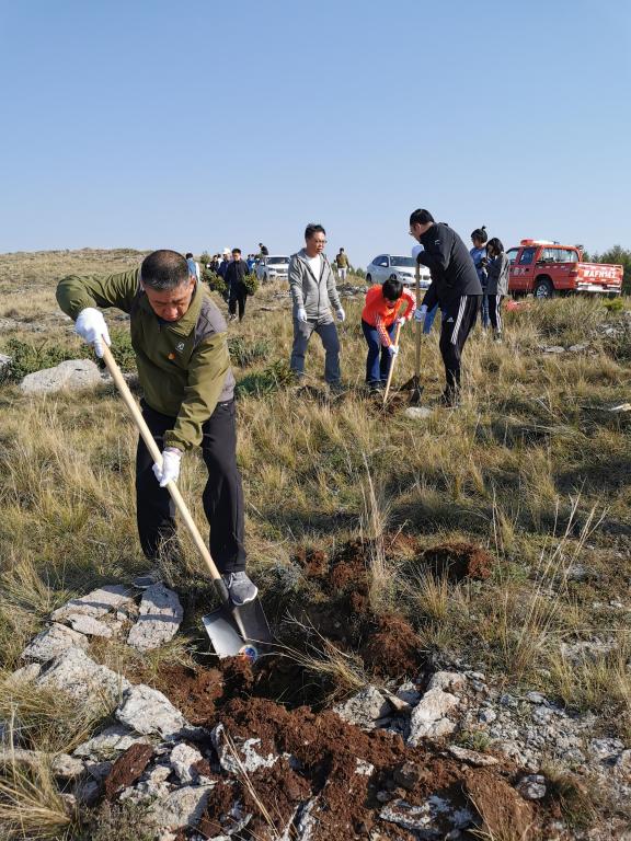 9月28日,太阳集团tyc5997党总支书记黄翔、院长周建涛及副院长赵俊峰、孙涛带领教工和学生党员到大青山参加公益植树。在植树前,参加公益植树的47名教工、学生党员面对党旗,重温了入党誓词。之后,在县林业局技术人员的指导下,47名教工、学生党员“守初心、担使命”,不怕苦不怕累,严格按照树木种植标准和规范,挥锹挖土培土,精心种植了100棵油松。