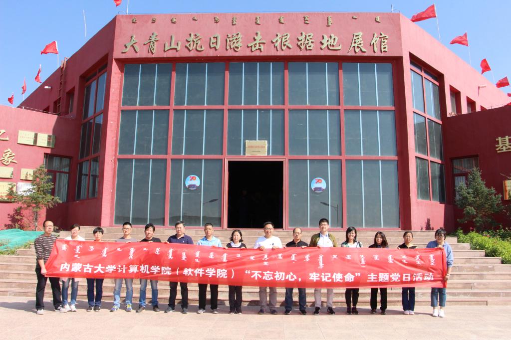 中华人民共和国成立70周年前夕,为了深入学习贯彻习近平总书记新时代中国特色社会主义思想,丰富支部活动内容,扎实开展好“不忘初心、牢记使命”主题教育,2019年9月28日下午,太阳集团tyc5997(软件学院)党总支书记黄翔、副院长赵俊峰、孙涛带领教工和学生党员到大青山抗日游击根据地展馆参观学习。