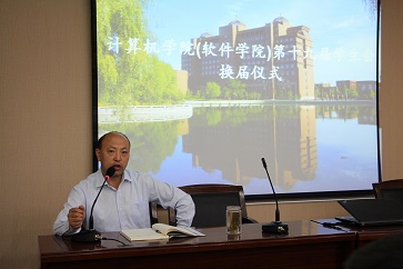 首先由第十八届学生会主席贾鹏对新一届主席团进行任命,第十九届学生会主席陈胡日查对各部部长进行任命。随后,团总支兼职副书记贾媛媛对学生会新成员的加入表示祝贺,并从“沟通交流、团结互助、认真负责、坚持不懈、努力学习”五个方面,对同学们提出了要求。最后以“一个人走得快,一群人走的远”作为结束语,希望大家可以在学生工作的道路上走的更加长远。之后,各部门部长及部员进行了简短的自我介绍,让学生会成员之间进行相互了解。